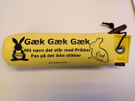 Med denne fine påskegule dummy kan du sende et særligt gækkebrev til en sød træningskammerat eller hundeveninde.