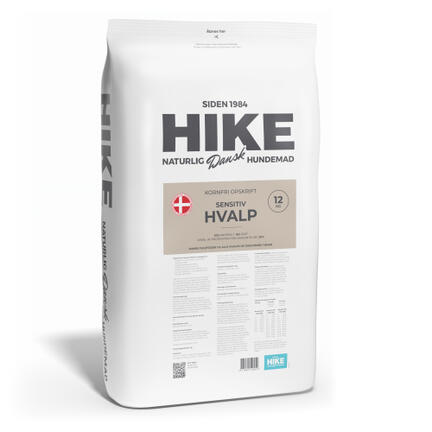 HIKE Kornfri Sensitiv HVALP er sammensat uden kylling, ris, majs og kornprodukter.
