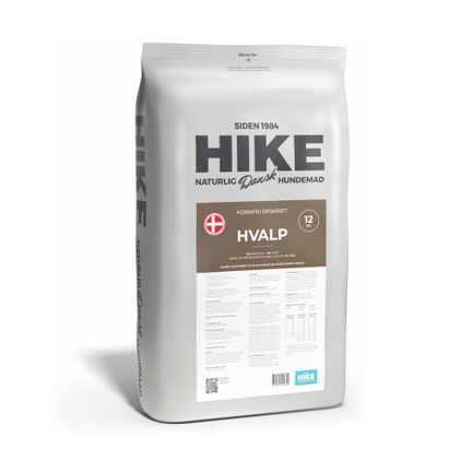 HIKE Kornfri Hvalp er hvalpefoder tilpasset hvalpens naturlige behov under opvæksten. Energifordeling der hjælper med at sikre stabil og balanceret vækst.