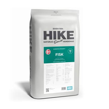 HIKE Kornfri FISK er hundemad til den voksne hund, med et normalt aktivitetsniveau, og er balanceret sammensat med den rette mængde energi og næringsstoffer til vedligeholdelse af kroppens funktioner. HIKE FISK er desuden sammensat med fisk som eneste animalske proteinkilde, og er derfor særdeles velegnet til hunde, der har udfordringer med andre proteinkilder.