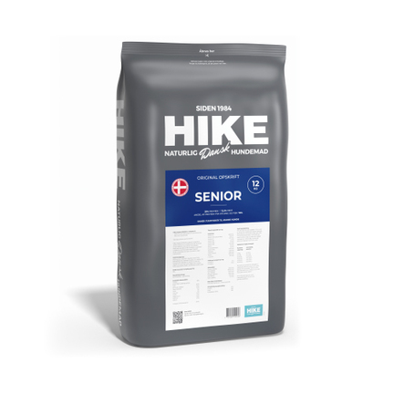 HIKE Original SENIOR er specielt velegnet til ældre hunde, for at imødekomme det ændrede ernæringsbehov, som opstår med alderen. Med fokus på støtte til led, fordøjelse og generel sundhed, er sammensætningen tilpasset, så den medvirker til at sikre et sundt liv, også i seniorårene.