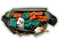 Tasken rummer let adskillige dummyer, når du træner, er på working test eller bare på tur med hunden. Tasken har 2 for lommer og 2 side lommer. Takket være det gode materiale valg kan du også have våde dummyer eller vildt i tasken, da den er vandtæt og let at rengøre.
