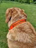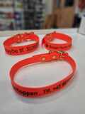 Biothane halsbånd med Navn og telefon nummer præget i halsbåndet.
