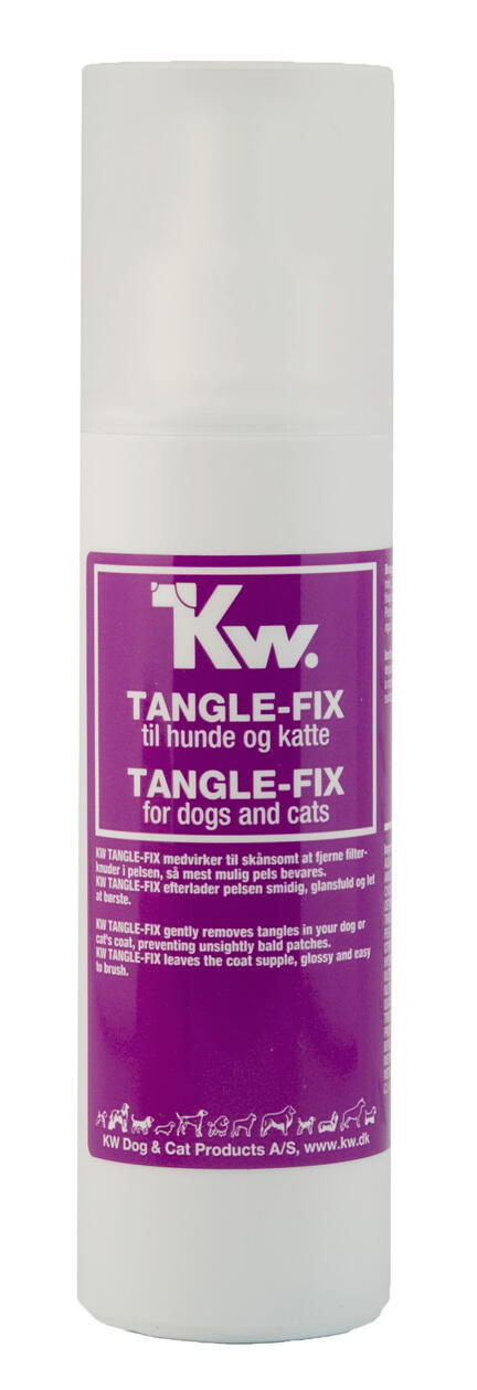 KW TANGLE-FIX medvirker til skånsomt at fjerne filterknuder i pelsen, så mest mulig pels bevares. KW TANGLE-FIX efterlader pelsen smidig, glansfuld og let at børste.