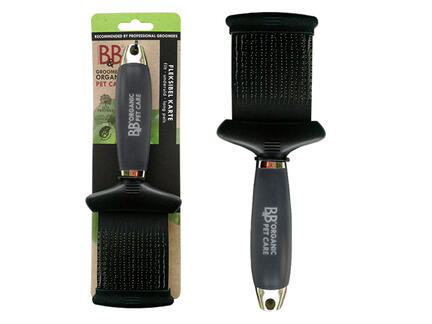 B&B's flexible karte med børste på begge sider, følger nænsomt hundens kropsfacon og er skånsom for huden.