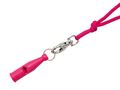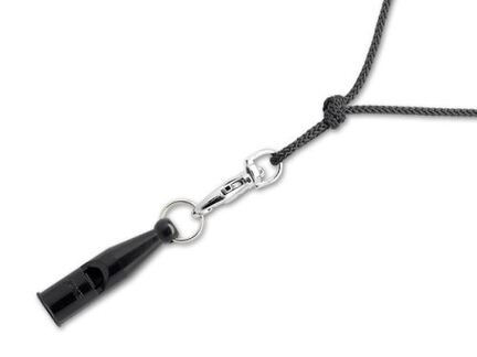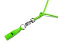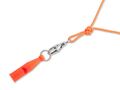 Vælg mellem sort, orange, neon grøn eller pink – alle leveres med matchende fløjtesnor og karabinhage.