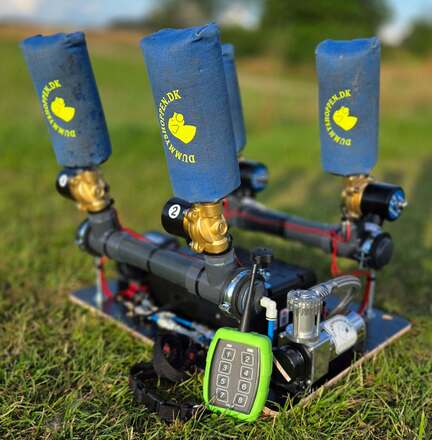 Maskinen afskyder dummyer ved hjælp af lufttryk fra en kompressor – helt uden krav om tilladelse.