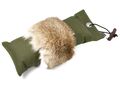 Pointer dummyen, har fyld af sand, som gør den tung, så hunden vænnes til at bære mere vægt, den har skindbælte på midten som opfordre hunden til et korrekt greb.