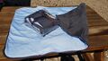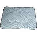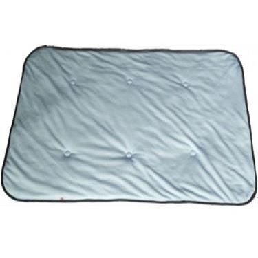 Tæppet har en lyseblå køleside, som både kan lægges over hunden eller hunden kan ligge sig på det. Bagsiden er en praktisk grå børstet bomuld.