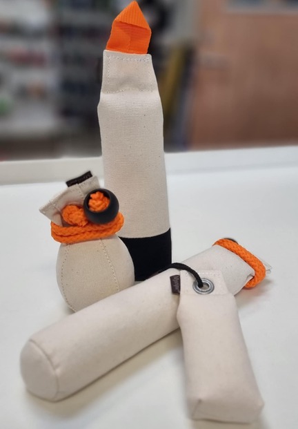 - Alle dummy'er er hvide og let synlige for den unge hund